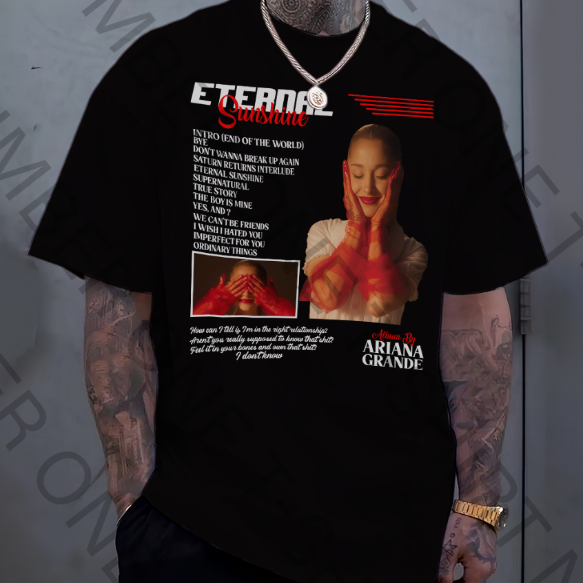 Camiseta Basica Algodao Ariana Grande Eternal sunshine Graphic Album Pop Unissex