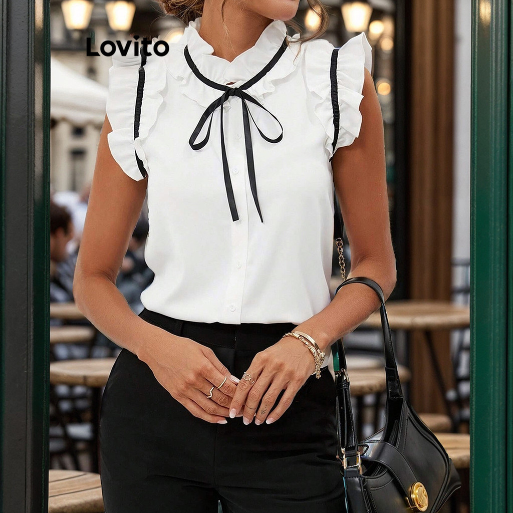 Lovito Romântico Blusa Feminina Lisa com Babados e Laço LBL09261