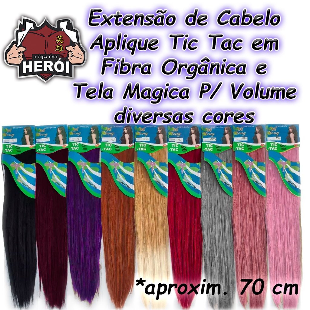Aplique Extensão de Cabelo Aplique Tic Tac em Fibra Orgânica e Tela Mágica p/ Volume - Diversas Cores