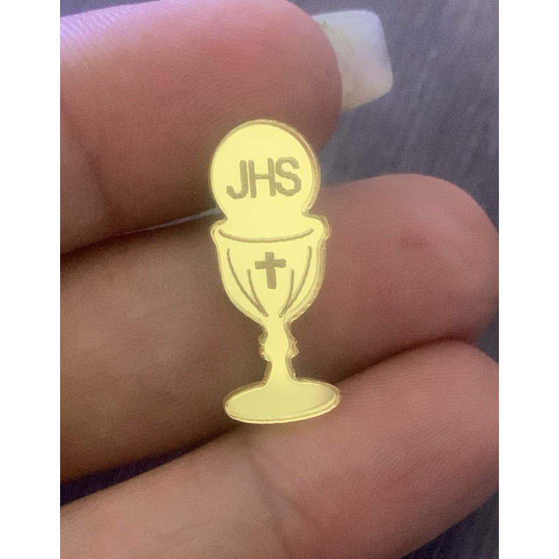 Kit 15un.Aplique Acrílico Espelhado Cálice Primeira Comunhão Tam. 2,5cm Eucaristia Católico