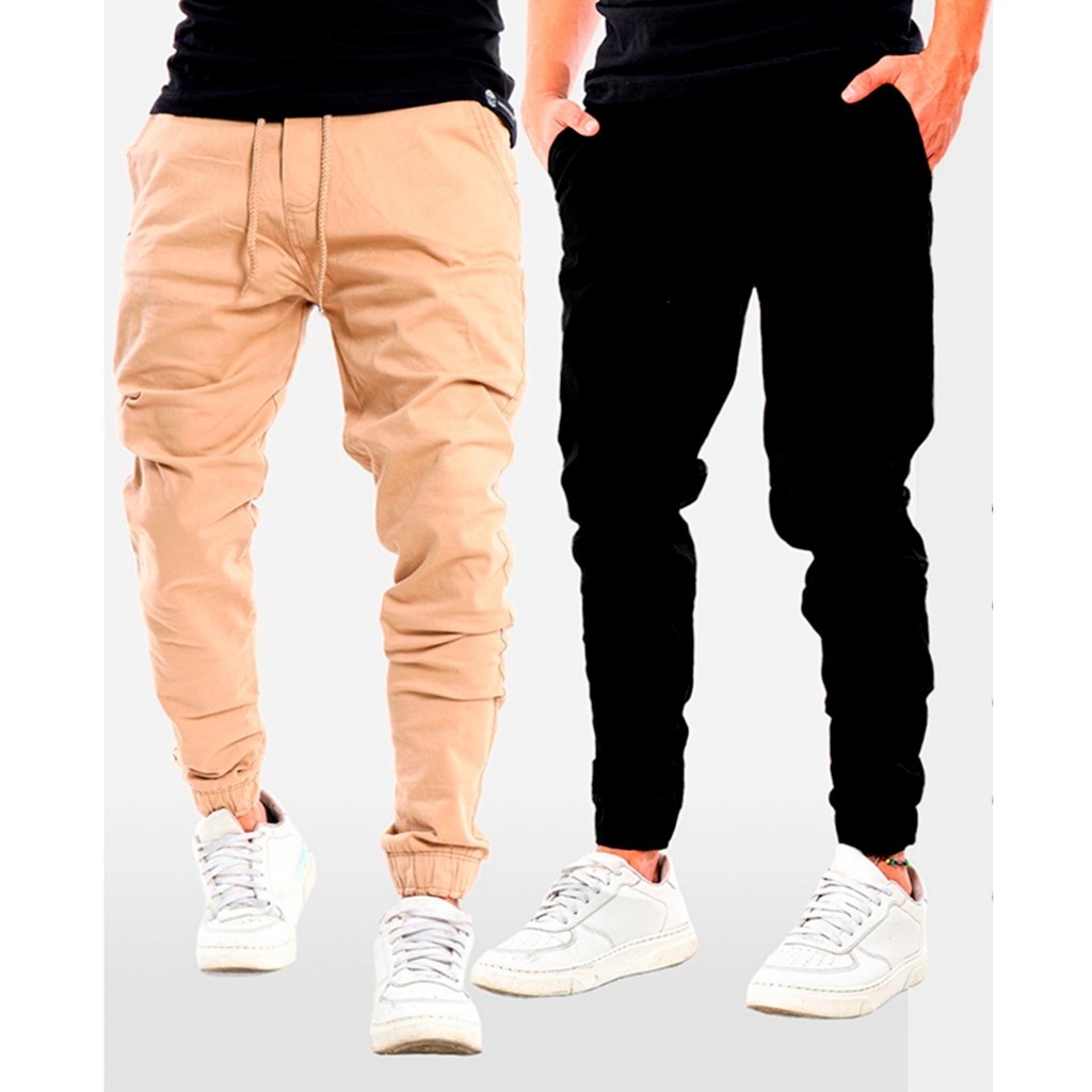 Kit 2 Calça Jogger Masculina Sarja ou Jeans 4 Bolsos com Punho Elástico Streetwear