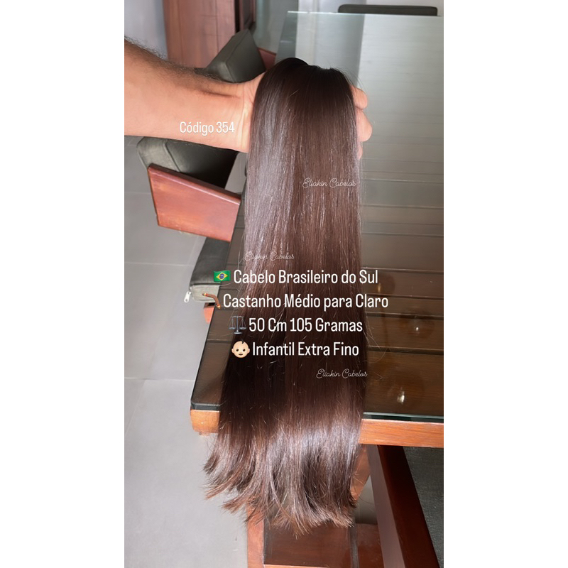 Cabelo Humano Brasileiro do Sul Castanho Médio para Claro 50 Cm 105 Gramas