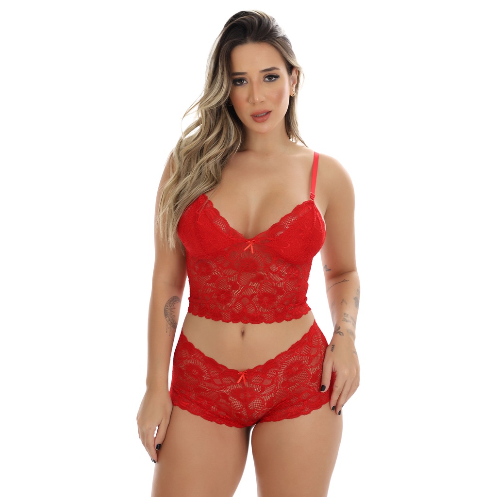Conjunto de renda espera marido calesson/cropped e caleçon /lingerie langerie sexy/sem bojo com forro/ short baby doll sensual/ shortinho