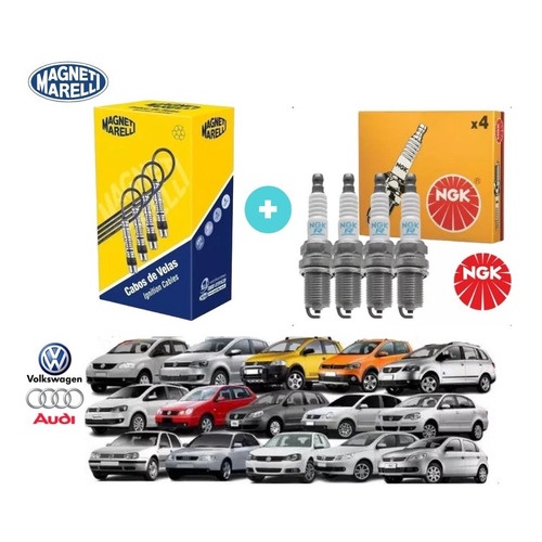 Kit Cabos + Velas Ngk Crossfox Fox Spacefox Gol Voyage Saveiro Golf Polo Polo Sedan 1.0 1.6 8v após 2008 Promoção