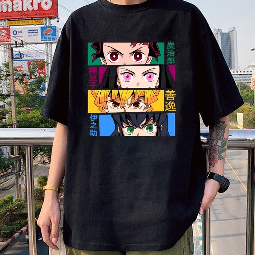 Camiseta Oversized Anime Demon Slayer Kimetsu no Yaiba Zenitsu Tanjiro Inosuke Mitsuri Unissex
