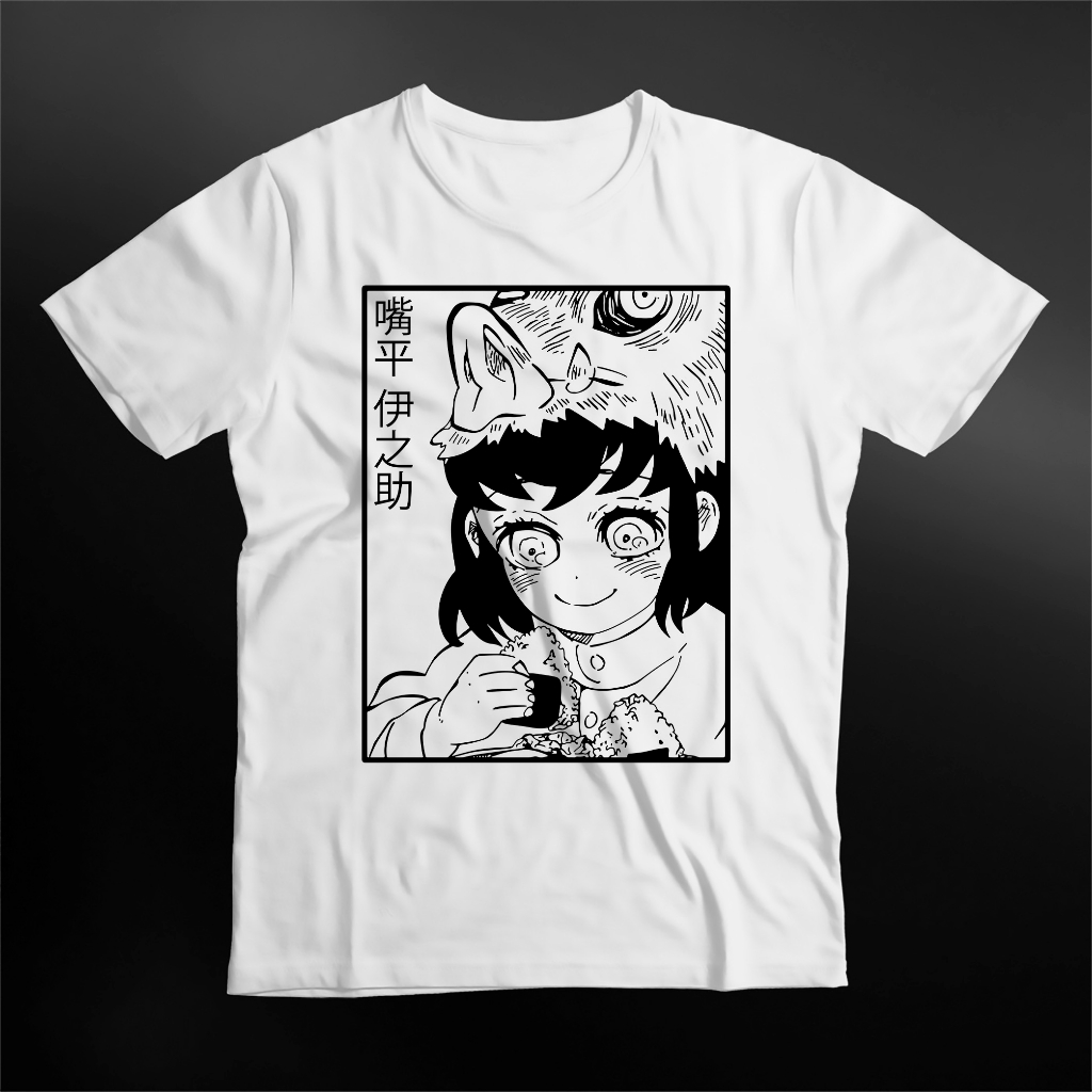 Camiseta Branca Mangá Kimetsu No Yaiba Inosuke Hashibira Demon Slayer Unissex