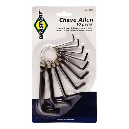 Jogo Chave Allen Polegada 1/16 A 3/8 - 10 Peças Cor Pret