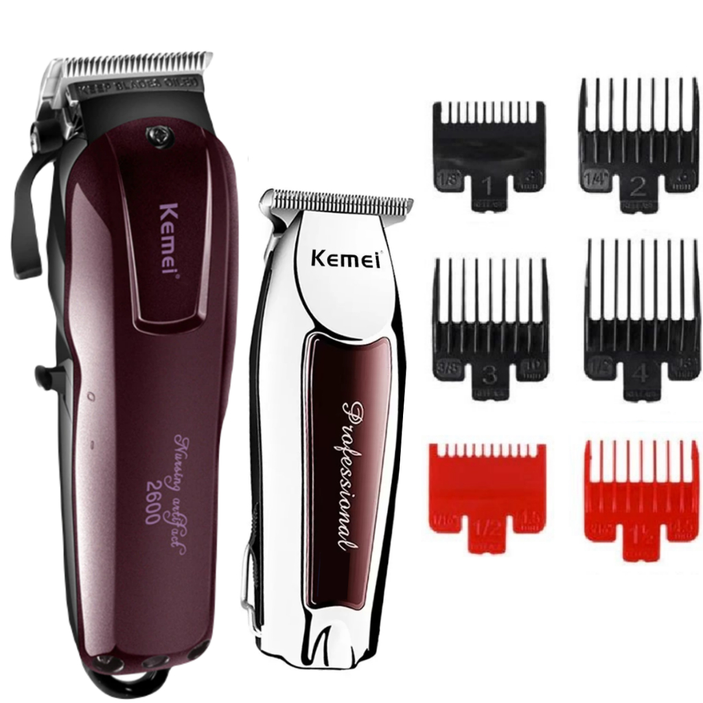 Kit 2 Máquina Profissional De Cortar Cabelo Bordô Kemei PG2600 E Máquina De Acabamento Kemei 032