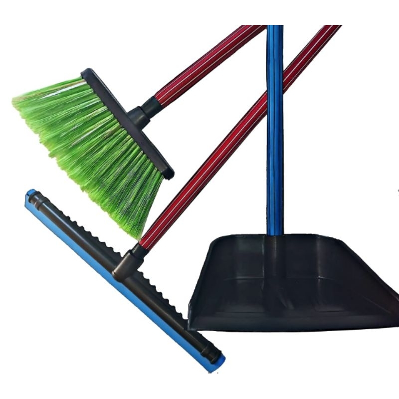 kit Vassoura , Rodo de 40 cm e Pá de lixo com Cabos/Limpeza para sua casa/ Cores sortidasl