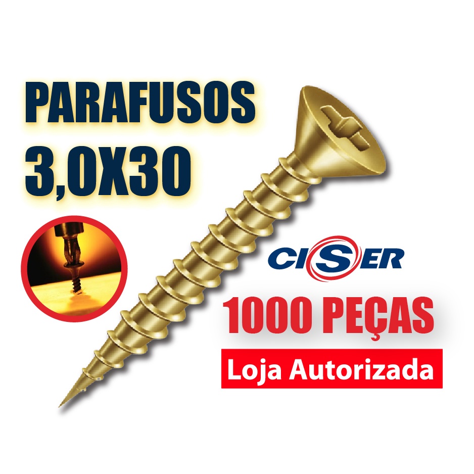 Parafuso 3,0 X 30 Chipboard Chata Phillips para Madeira - CISER CAIXA COM 1000 peças - 3 0 x 30 / parafusos para madeira