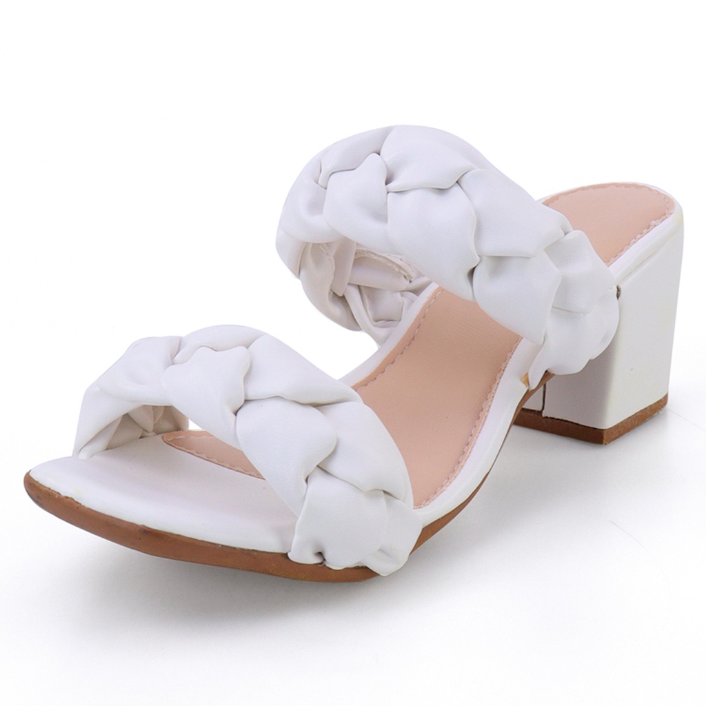 Sandália Feminina Tamanco Salto Grosso Confortável Moda Fashion Trança Branco