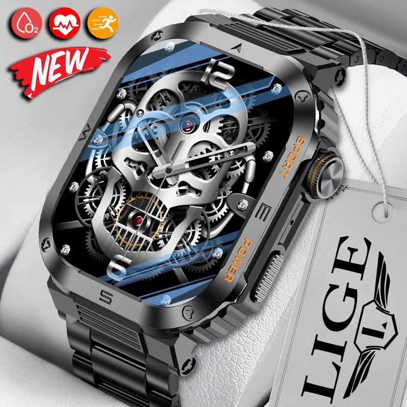 LIGE Smartwatch Relógio Inteligente Monitor De Frequência Cardíaca Para Homens Atividade Masculina Com Aço À Prova D'água Ao Ar Livre Relógios Esportivos Bluetooth Chamada Smart Watches