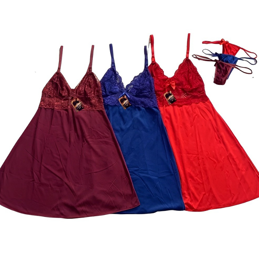 KIT 03 Camisola Luxo Strin com Calcinha Fio Dental