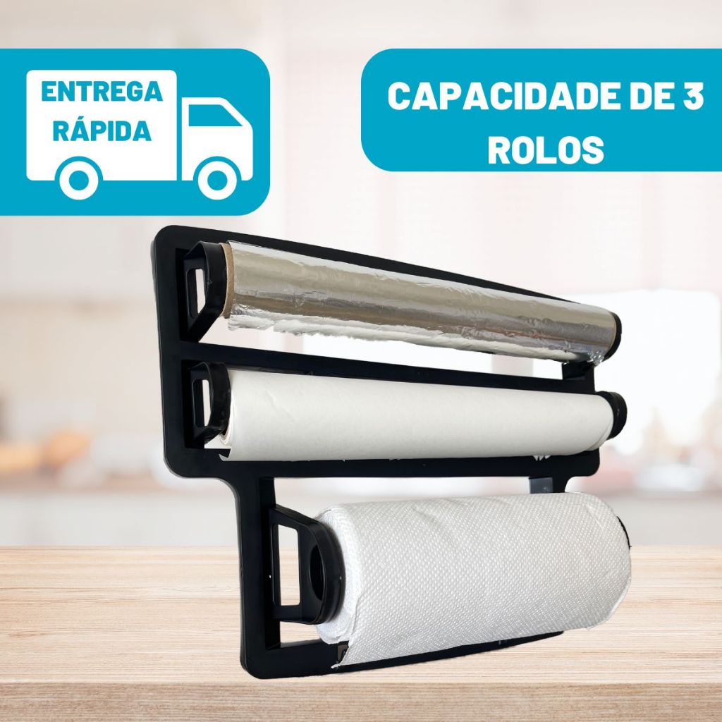 Porta Papel Toalha Triplo Suporte Rolos Para Cozinha 3 em 1