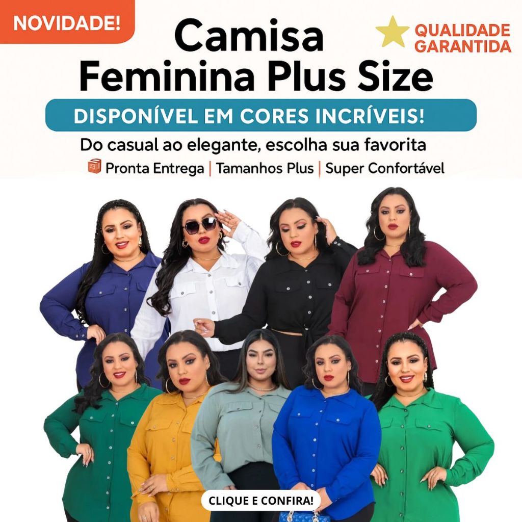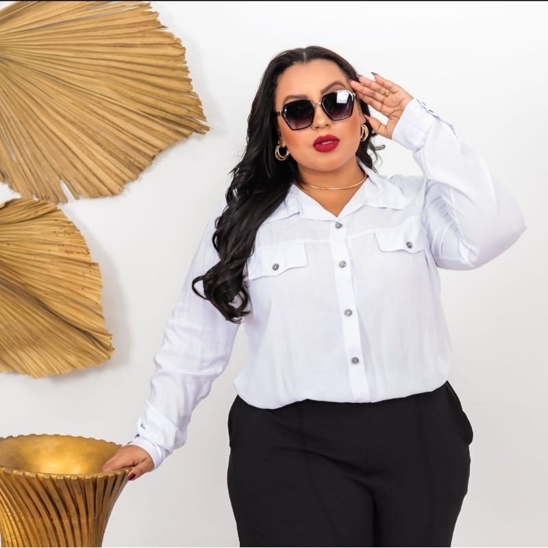 Camisa Social Plus Size Feminina Manga Longa G1 G2 G3 - Conforto e Elegância
