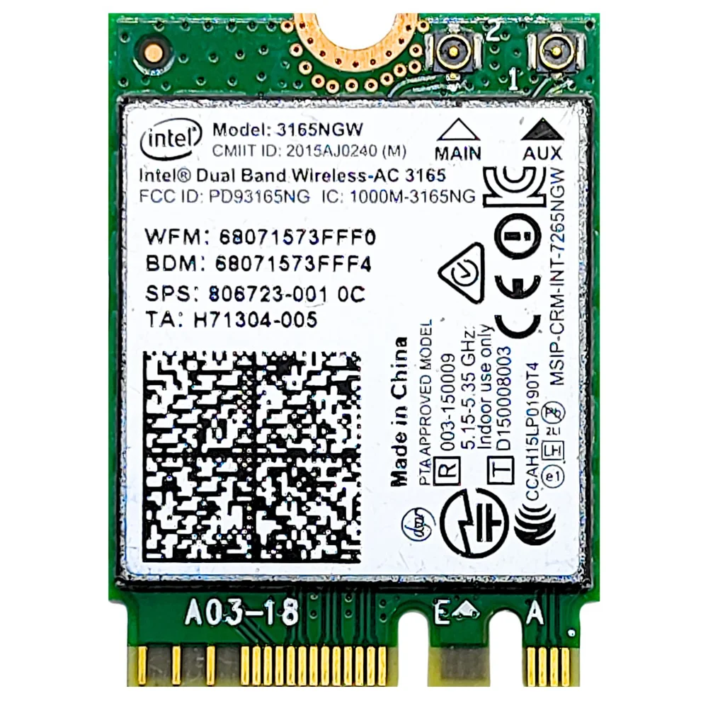 Placa De Rede Wireless Intel 3165ngw M.2 | Wi-fi Dual Band + Bluetooth 4.0 Para Notebooks E Mini PCs