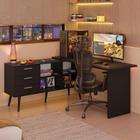 Escrivaninha em L Mesa para Computador Gamer 3 Gavetas Preto Lisboa Madesa