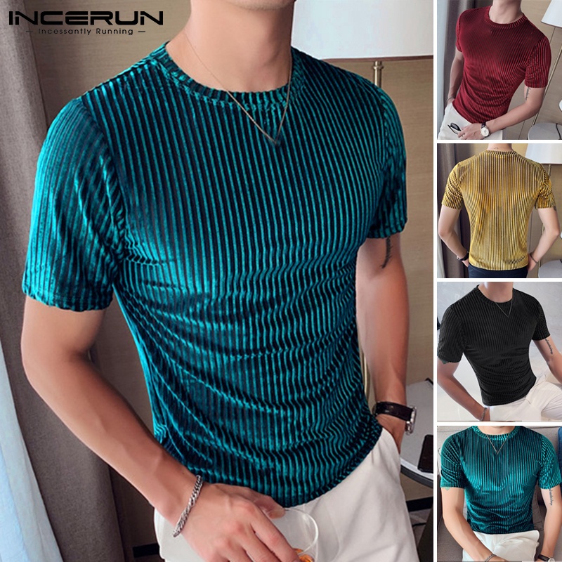 INCERUN Moda Masculina Veludo Meia Manga Gola Redonda Larga Casual Camiseta