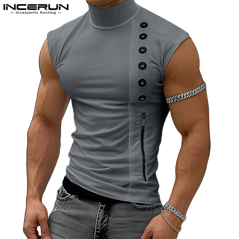 INCERUN Camiseta Regata Masculina Casual Sem Mangas De Cor Lisa Slim Fit
