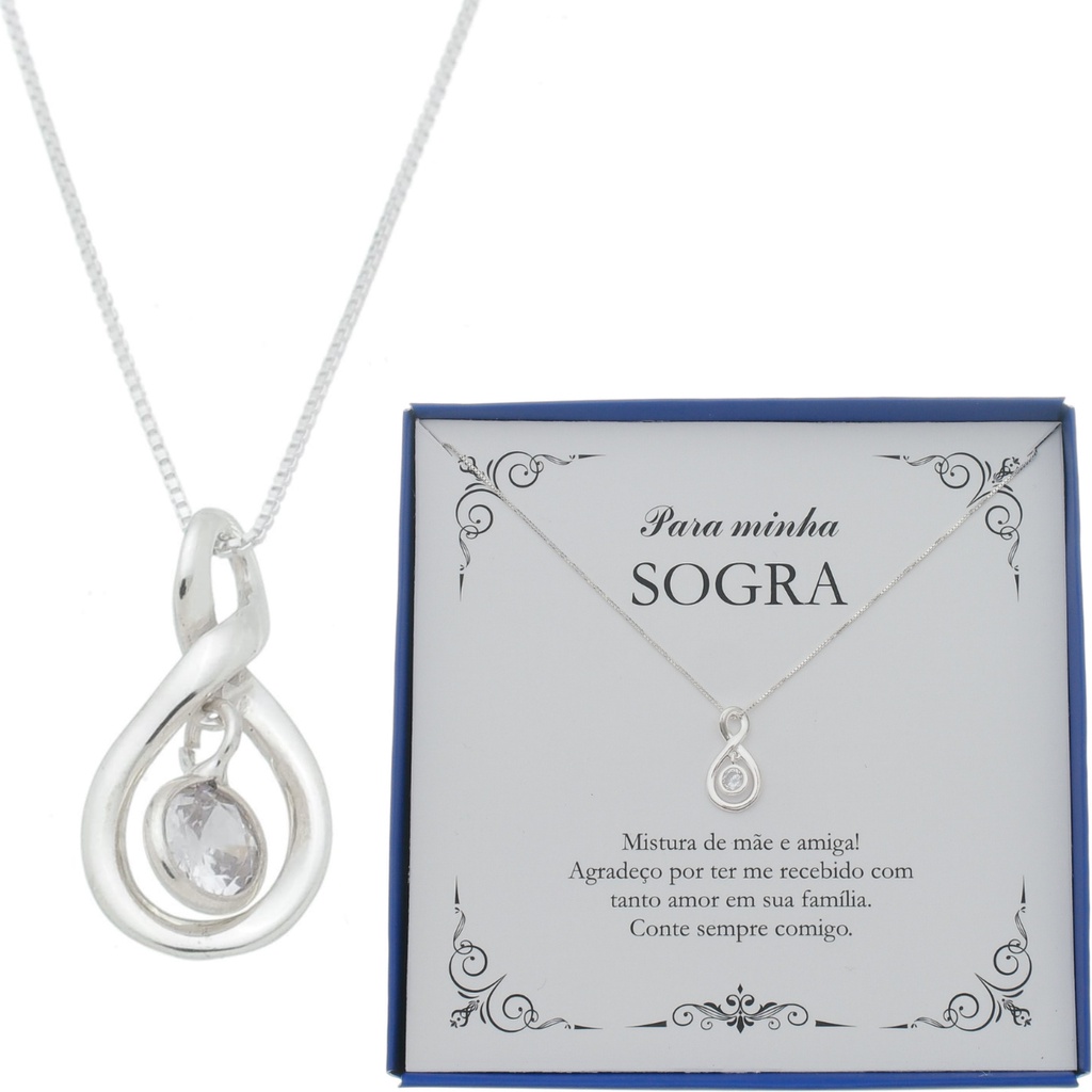 Presente Sogra Colar Feminino Prata 925 45 Cm + Extensor 5cm
