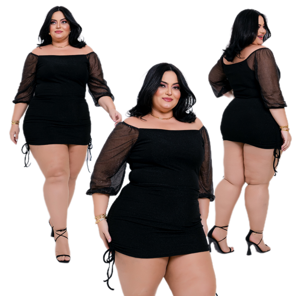 Vestido Plus Size Feminino Lurex Brilho Festa