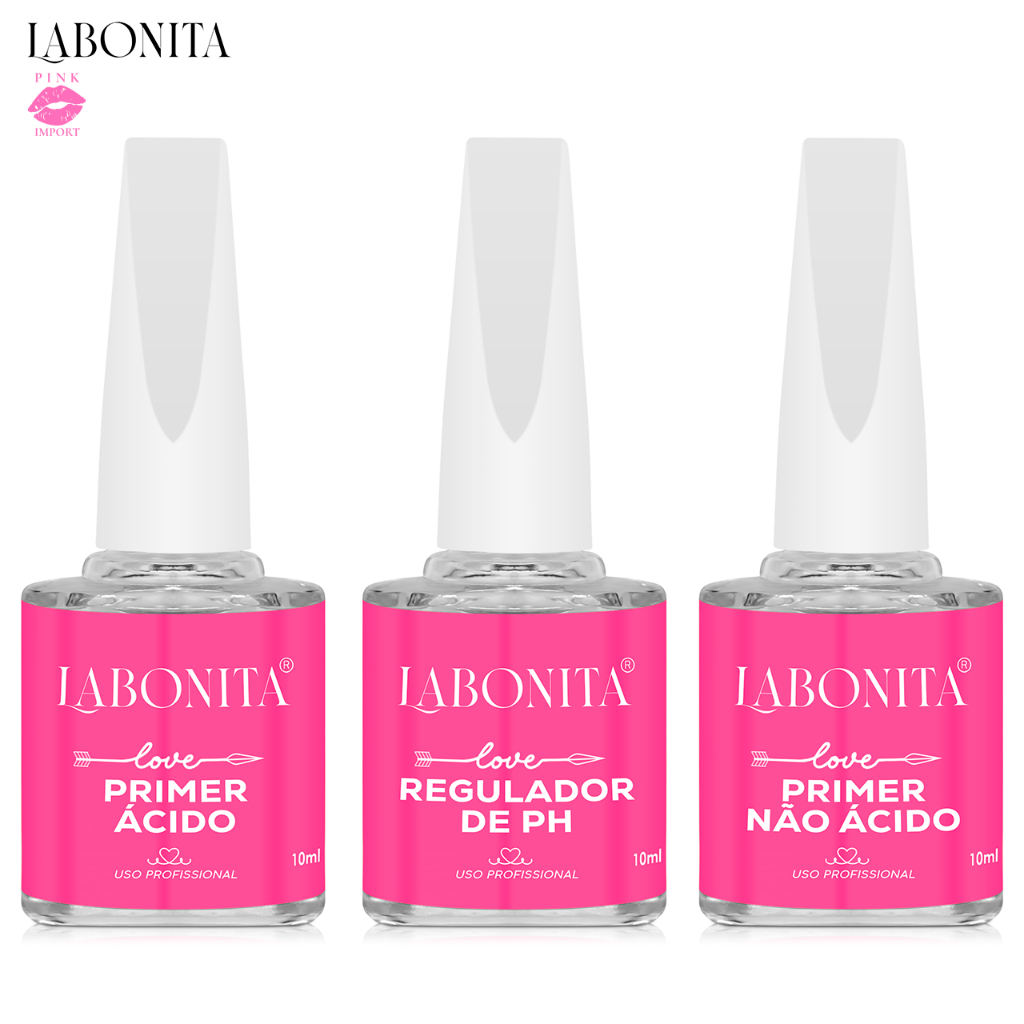 Kit Preparadores Labonita Primer Ácido + Regulador De PH + Primer Não Ácido Unhas de Acrigel Gel e Porcelana