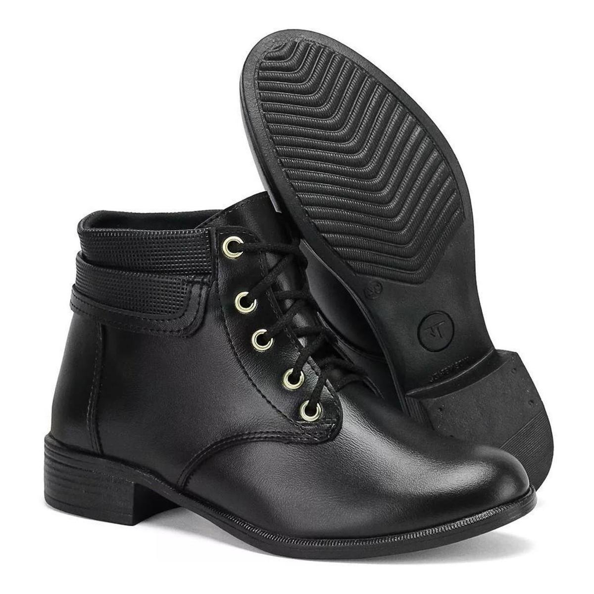 Bota Cano Curto Feminina Coturno Salto Baixo Tratorado Preto