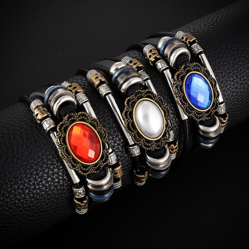 Pulseira De Couro Turquesa Vintage Rock Gemstone Moda Masculina E Feminina Aço Inoxidável Casal Multilayer Beaded PU Punk Party Jewelry Acessórios