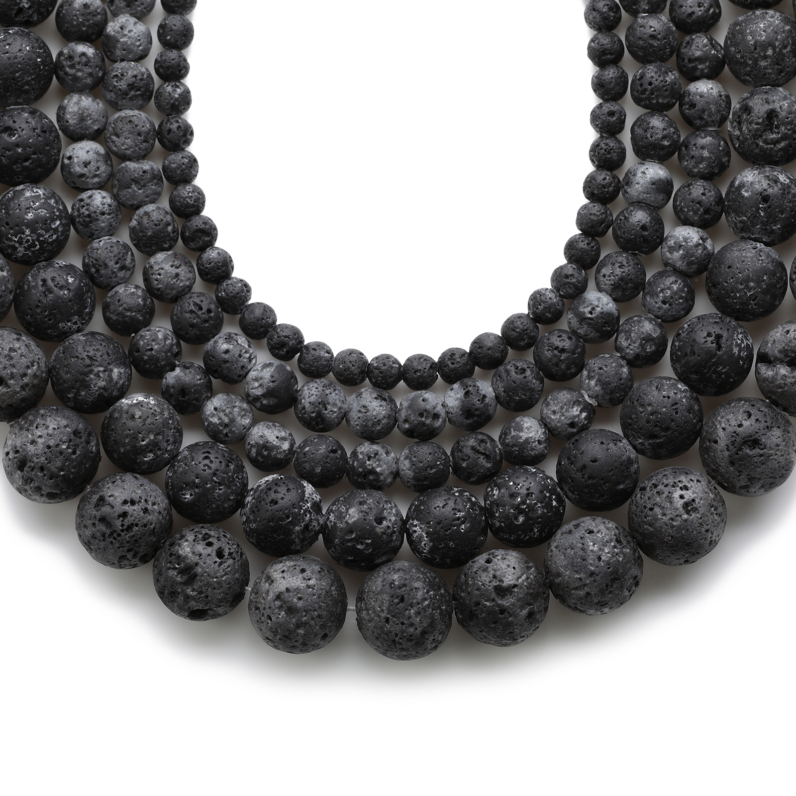 4-12mm Black Volcanic Lava Gemstone Beads Round Loose Energy Stone Crystal Para Jóias Fazendo Pulseira De Bricolagem Colar