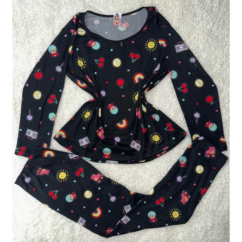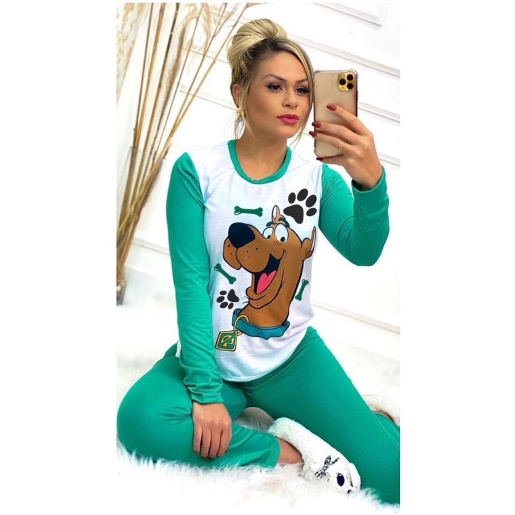Pijama Feminino Personagens Longo Manga Comprida Longa Dormir Confortável Blusa Calça Inverno
