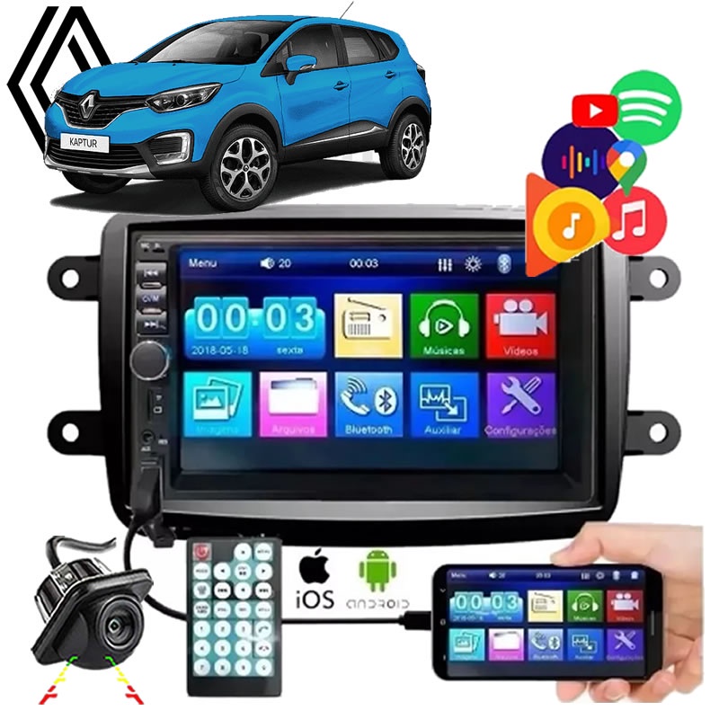 Central Multimidia Renault Sandero Duster Kwid Captur Mp5 Bluetooth Usb Radio Fm Espelhamento