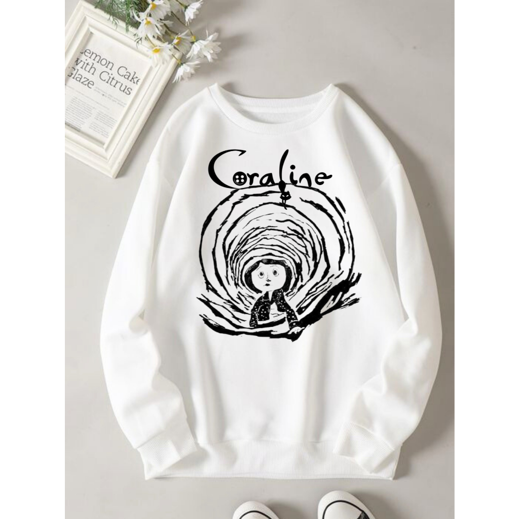 Moletom Coraline Filme animação Casaco Algodão Unissex Blusa de frio Desenho