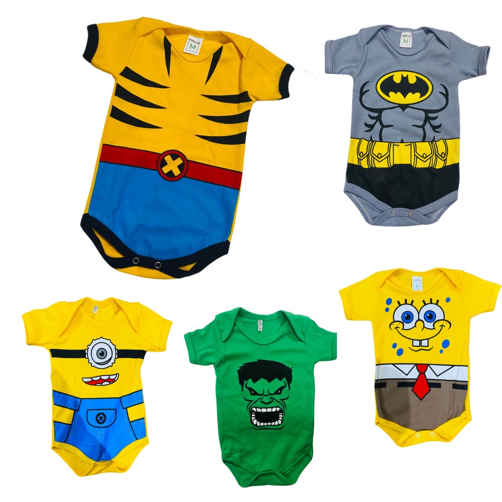Body de Bebe Temático Personagens Infantil Fantasia Mesversario minions princesas bolofofo herois moana homem aranha hulk batman cinderela