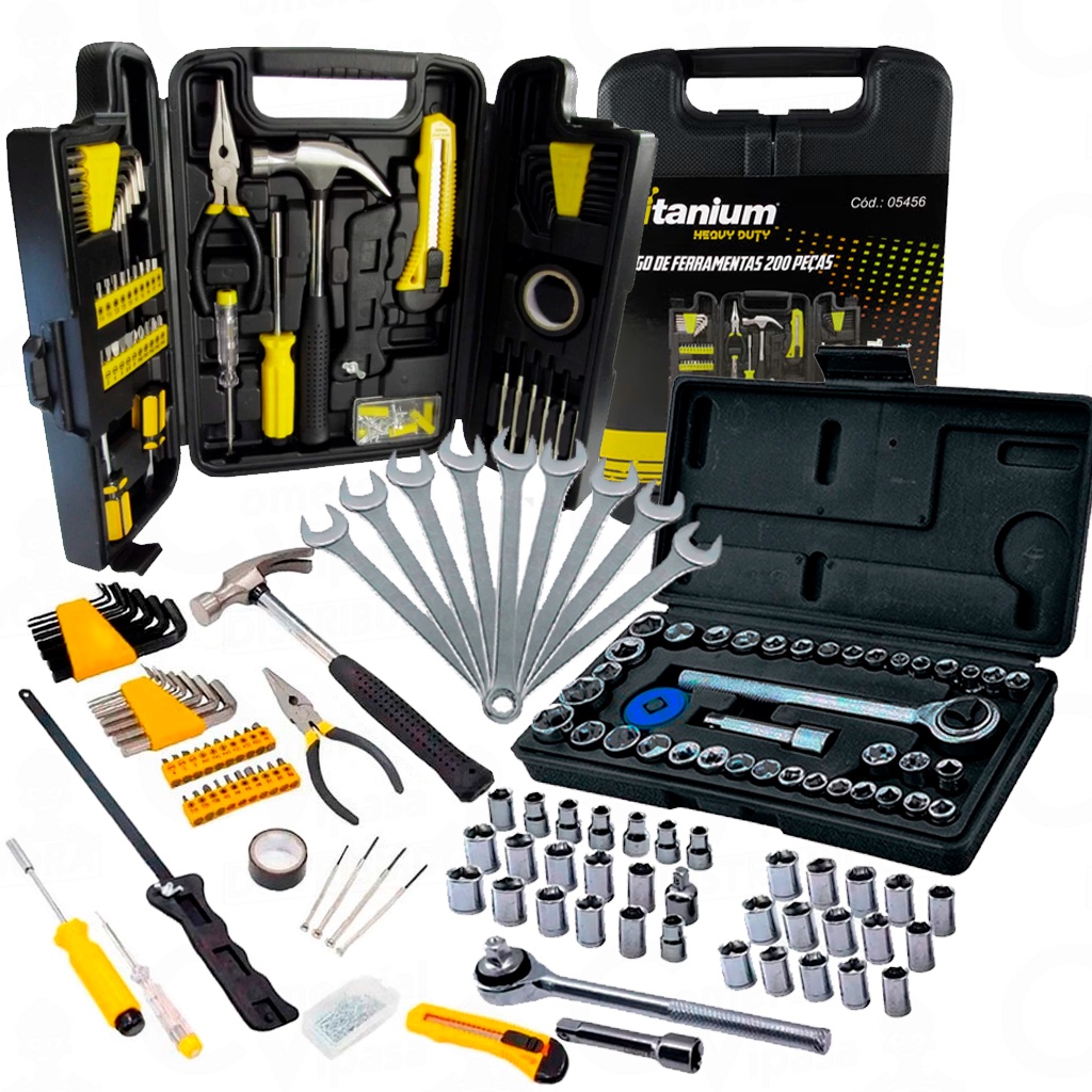 Kit Jogo De Ferramentas 250 Peças Manuais Uso Geral Completo C/ Maleta com Chave Combinada Profissional