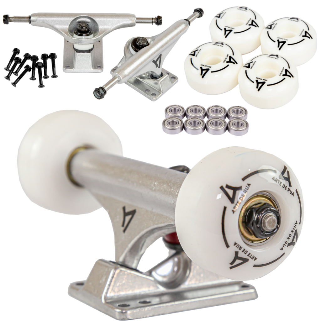 Truck Skate Profissional Arte de Rua + Kit Completo com Roda e Rolamento Abec7 + Parafuso Base