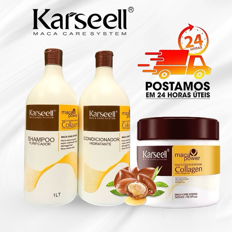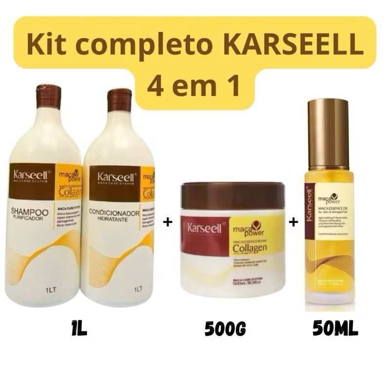 Kit Shampoo e Condicionador Karseell 1L + Máscara Karseell Oiginal 500g + Óleo Maca Essence 50ml