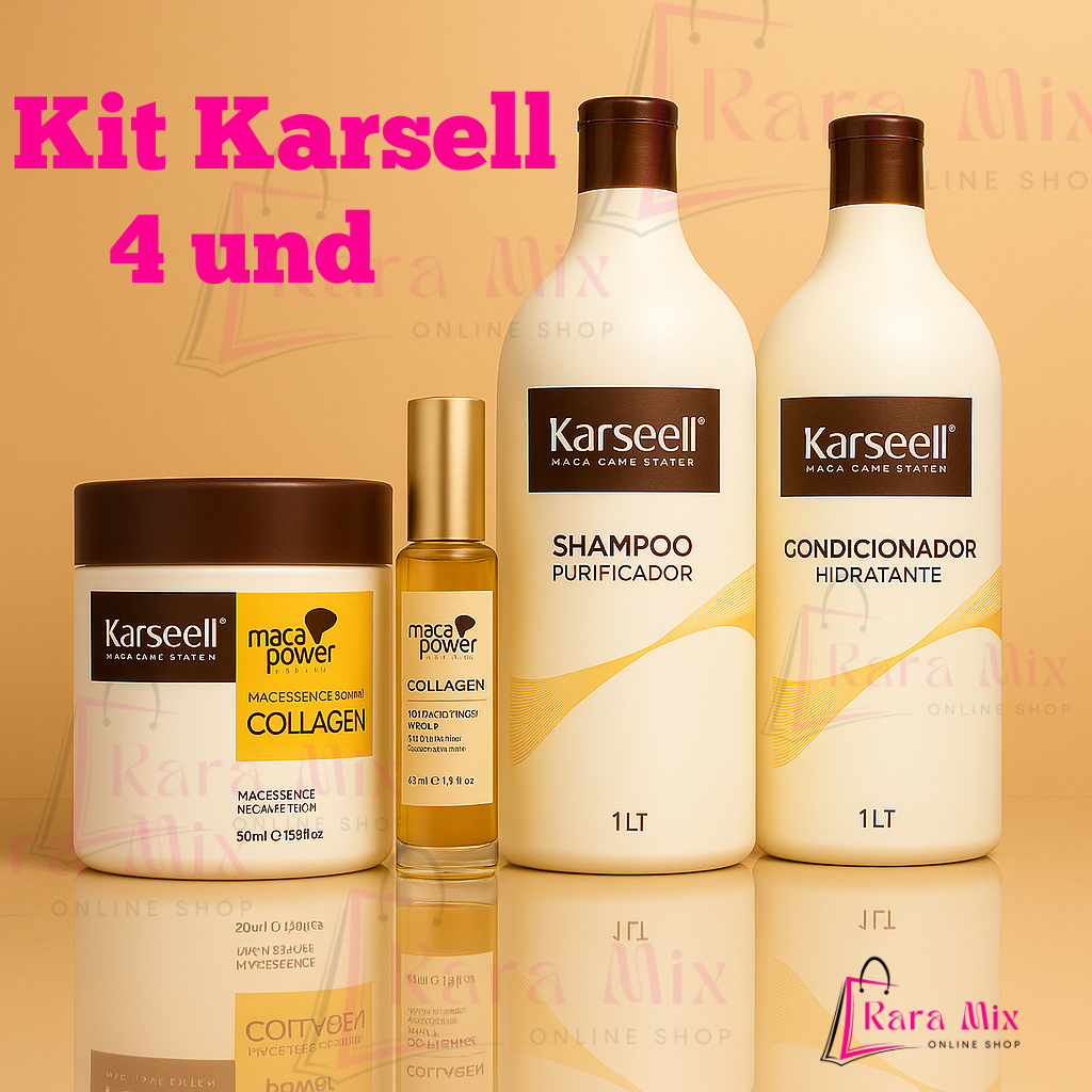 Kit Karseell 4 Peças – Shampoo 1L + Condicionador 1L + Máscara Colágeno 500g + Óleo Argan 50ml