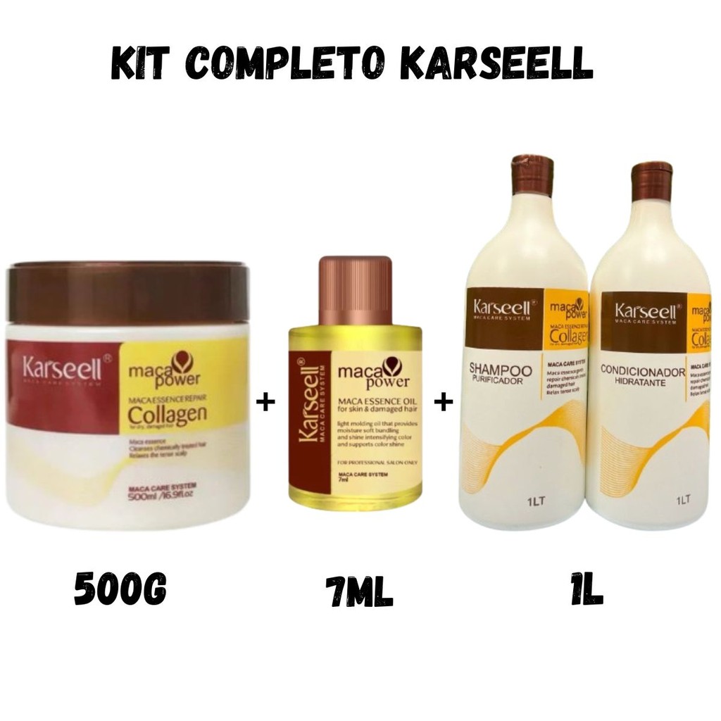Kit Karseell Máscara 500g + 1 Shampoo 1L+ 1 Condicionador 1L + Òleo 60ml
