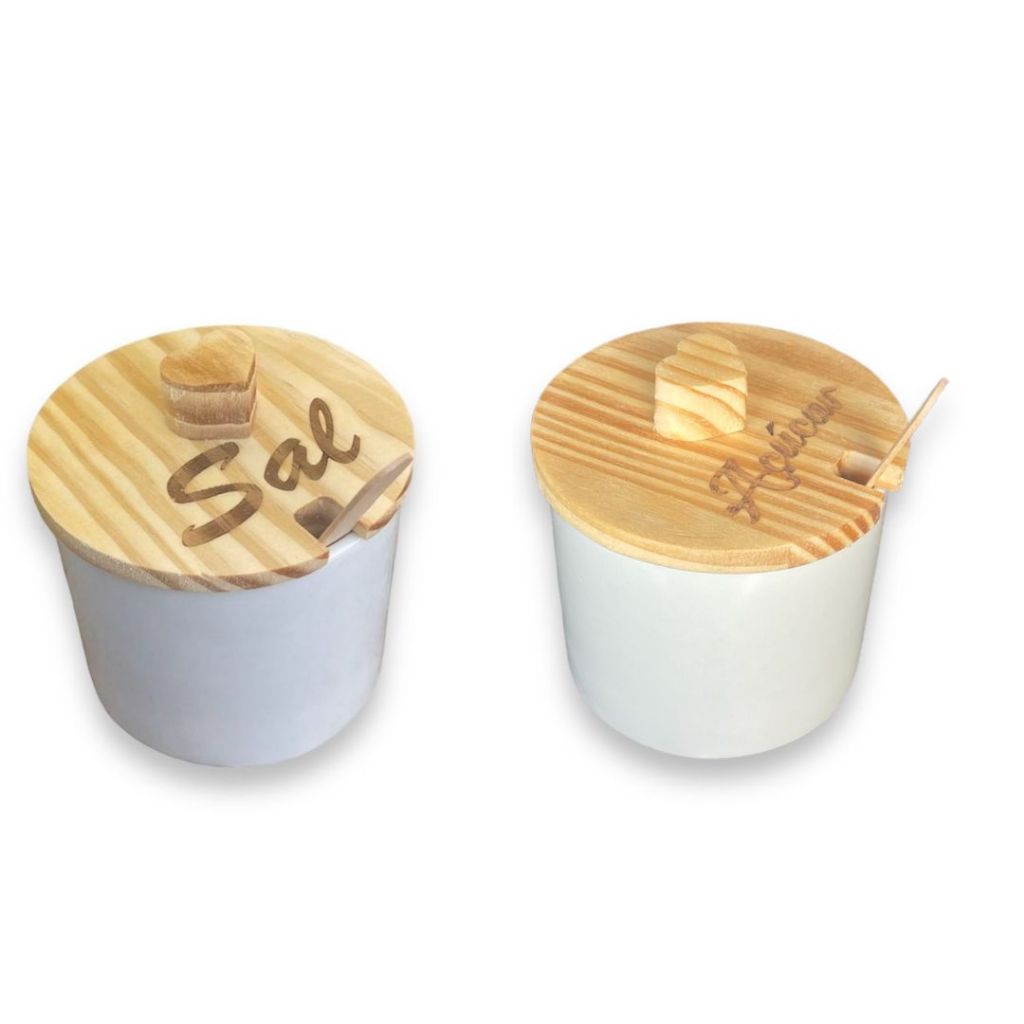 Açucareiro e Saleiro de mesa Branco porcelana com colher porta sal e porta açúcar kit
