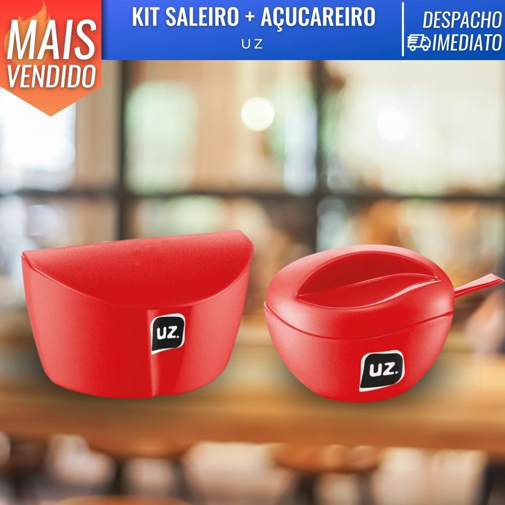 Kit Saleiro e Açucareiro C/ Colher De Mesa Porta Açúcar Sal C/ Tampa UZ Plástico
