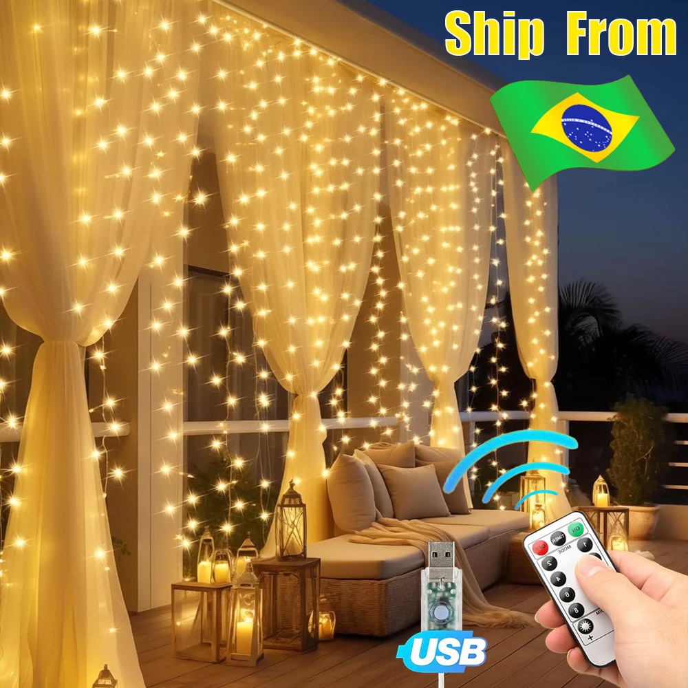 3Mx3M 300 Cortina De Luz LED Romântica Para Casamentos De Natal Ao Ar Livre