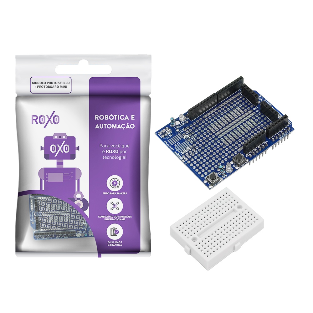 Placa Robótica Protoshield Uno Com Protoboard 170 Pontos - RoXo