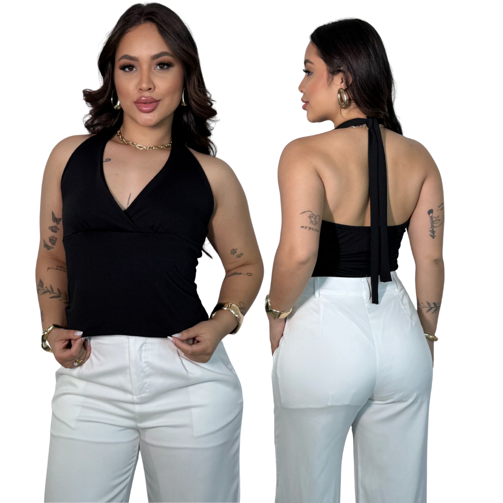Blusa Feminina Top Faixa de Amarrar no Pescoço Blusinha Frente Única