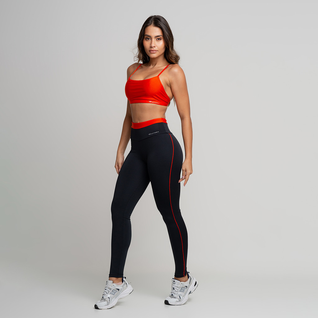 Conjunto Fitness Legging com detalhe em Vivo Laranja e Top Laranja Frente Unica