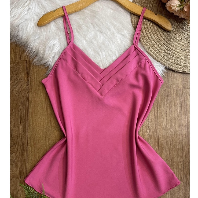 Blusa Feminina Regata Alça Regulável Blusinha Alcinha Regatinha Gola V1 Básica Crepe Varias Cores