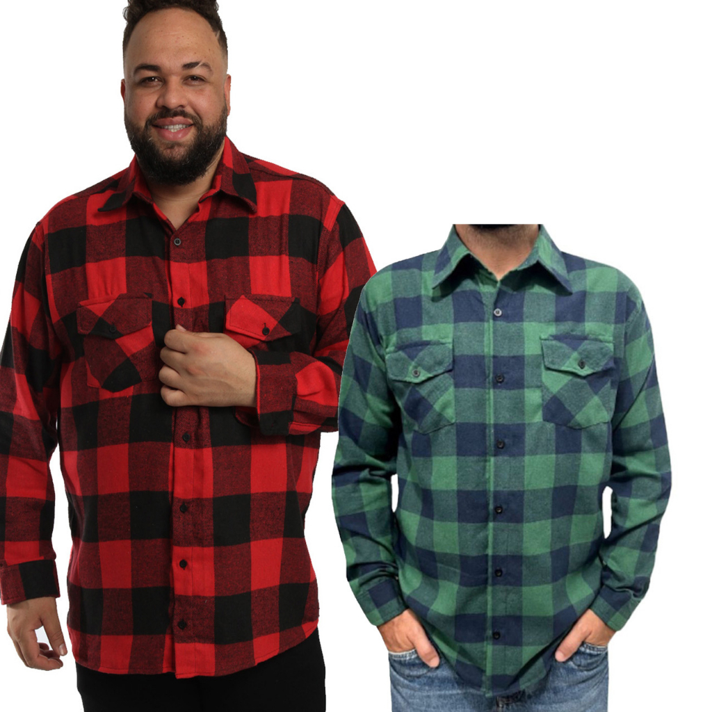 Camisa Xadrez Masculina Plus Size Manga Longa Flanelada P M G GG G1 G2 G3 G4