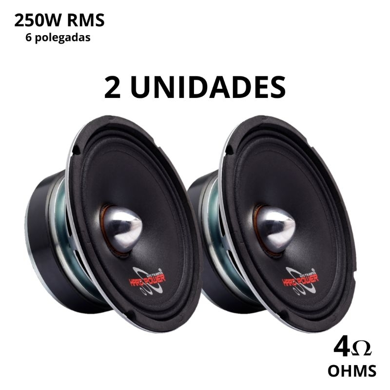 Par de Alto falante médio grave 6 Pol. Hard Power HP 250MB 250W RMS 4 ohms
