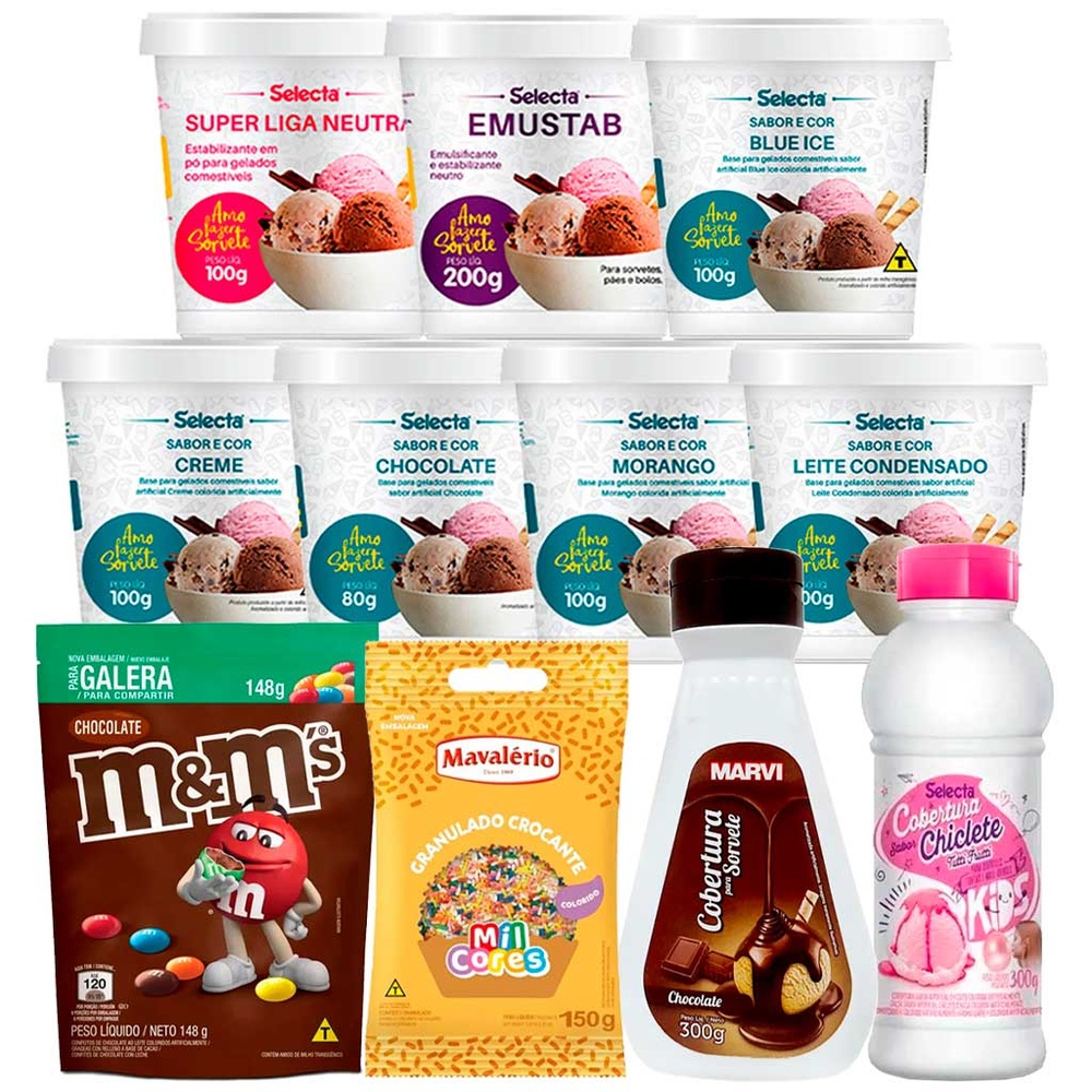 Kit Faça Sorvete em Casa com Liga Neutra, Emulsificante e Sabor em Pó - Escolha seu Sabor