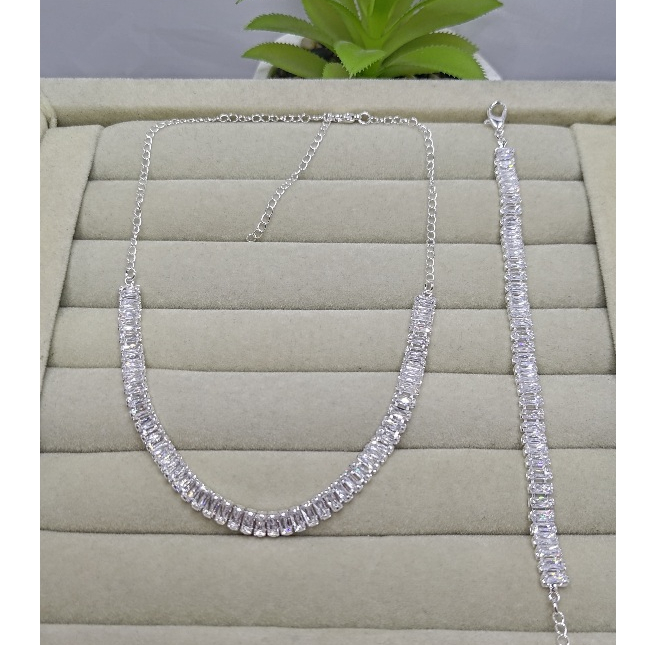 Colar Choker E Pulseira Riviera Baguete Zircônia Folheada A Prata 925 E Ouro 18K