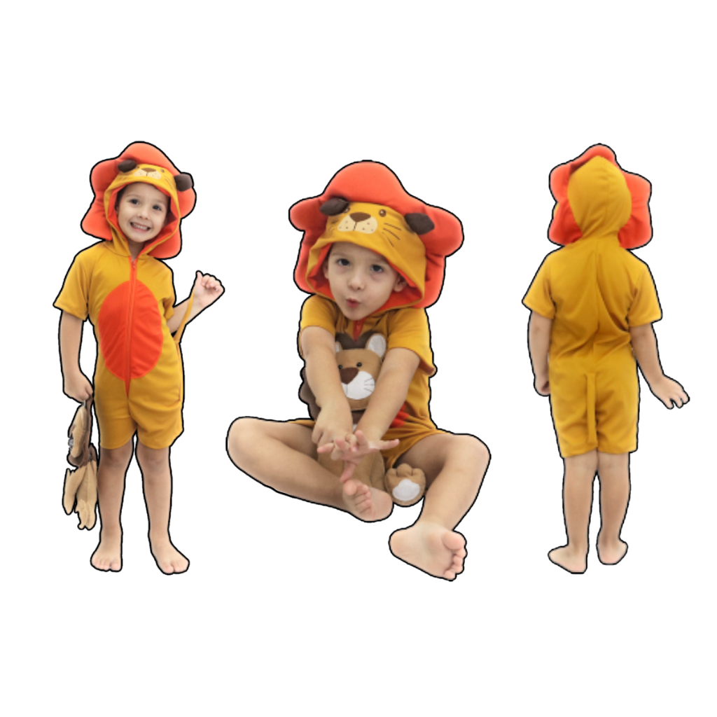 Macacão Baby Leão Leãozinho Fantasia Kigurumi Pijama Infantil Curto Bichinhos Parmalat